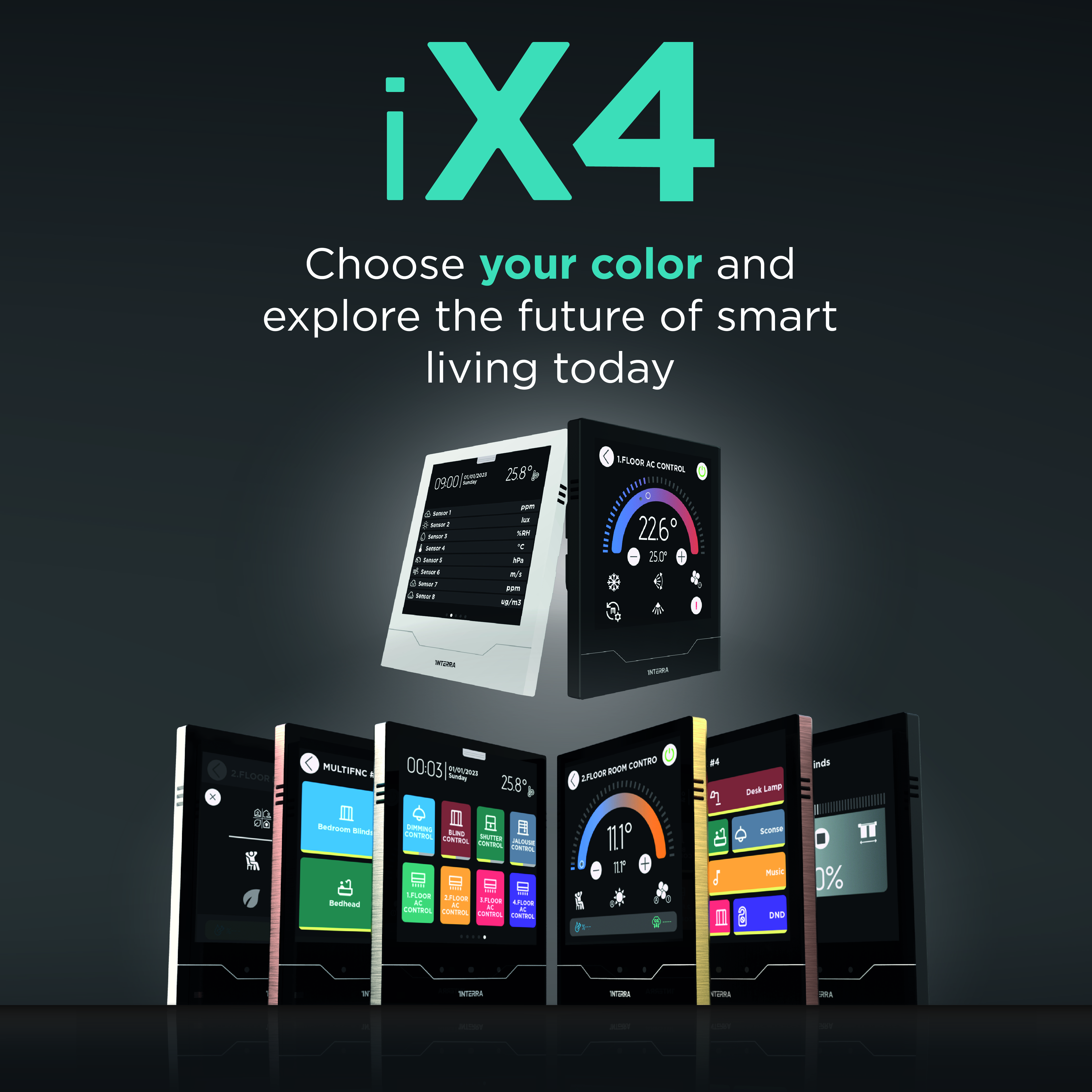 Interra iX3 is a wall-mounting room controller device with an integrated temperature, humidity, brightness and air quality sensor. iX3 can be easily and clearly operated through the friendly interaction interface. The iX3 can control heating and cooling operating modes with 2-points, Continuous and PWM thermostat functions. Air conditioner control is available on iX3 and can control AC gateway devices. iX3 has fully touchable LCD screen with IPS-display technology which provides low energy cost and good view angle. The device provides an adjustable LCD backlight for user comfort. The product range has 4 different models with AQI and without AQI, iX3 is supported up to 13 languages such as Turkish, English, German, Russian, Arabic, French, Greek, Italian, Persian, Spanish, Brazilian, Dutch and Polish. All models can be programmable with the same ETS database, which provides efficient commissioning.